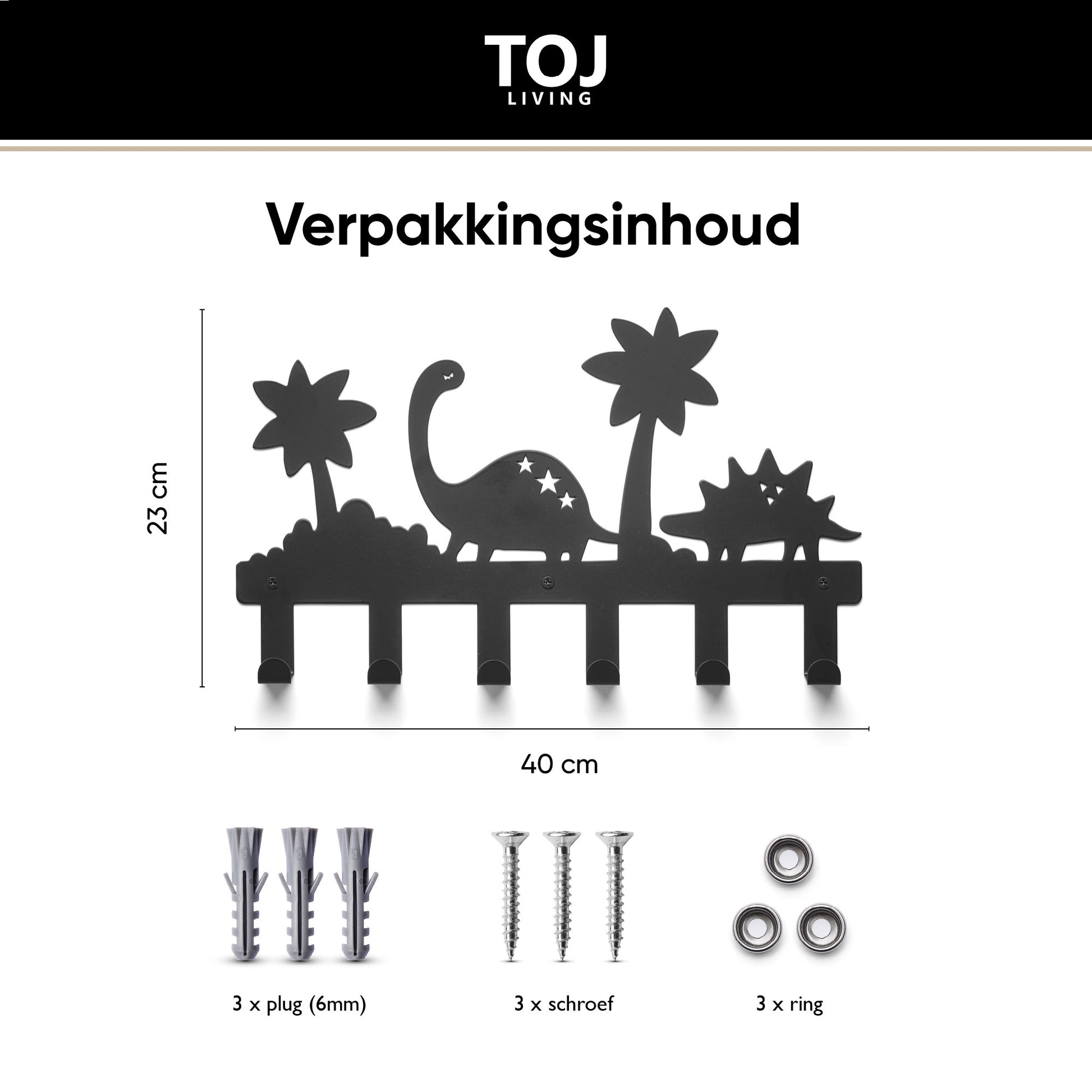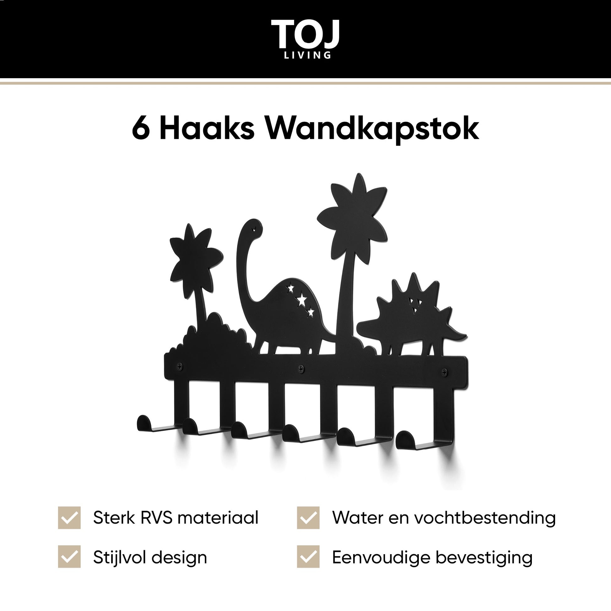 1× TOJ Living Dino Kindergarderobe – Schwarz (6 Haken)