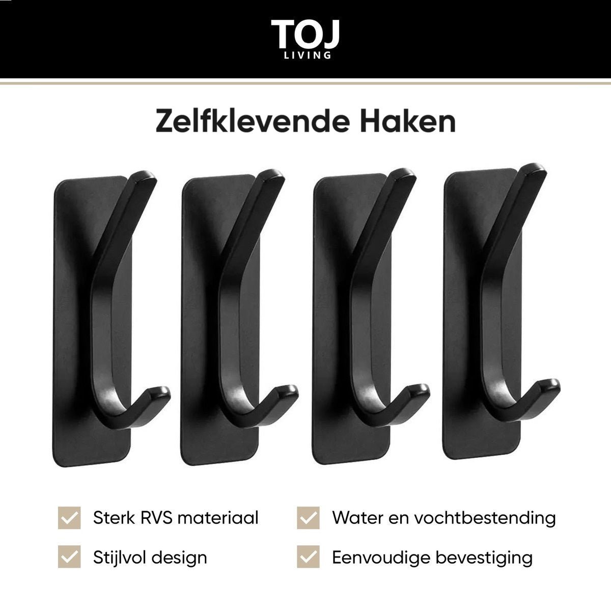4× TOJ Living Garderobenhaken – Schwarz (selbstklebend)