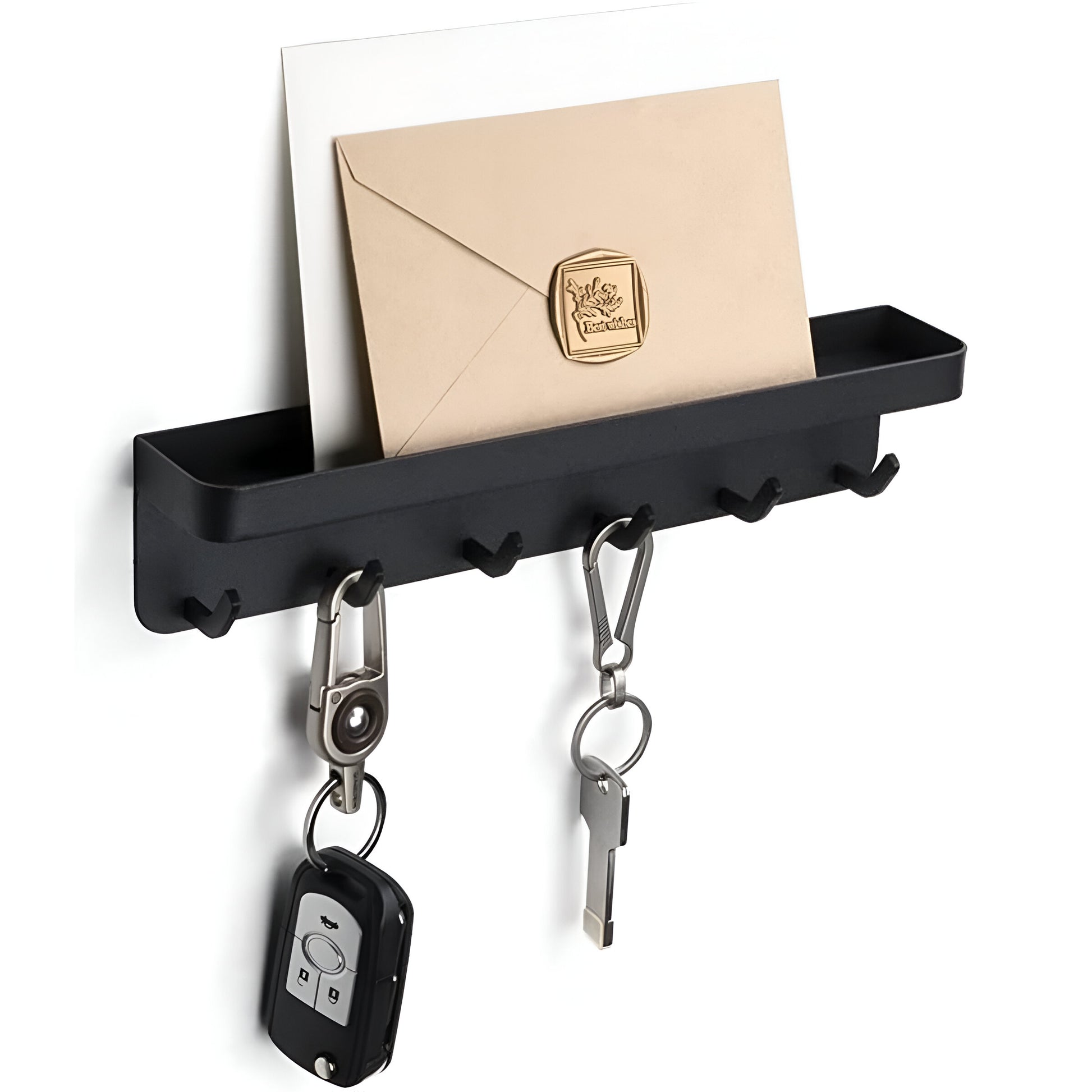 Selbstklebendes Schlüsselbrett – 6 Haken – Metall – 25 cm – matt-schwarz | TOJ Living