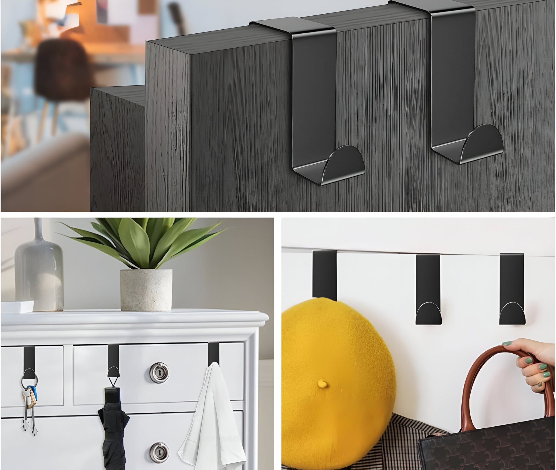 Mit dem kompakten Maß (6 × 2 × 4 cm pro Haken) passen sie problemlos über Standard-Innentüren und Schranktüren. Praktisch zum Aufhängen von Jacken, Taschen, Geschirrtüchern, Handtüchern, Bademänteln oder Küchenutensilien. Dank der feuchtigkeits- & korrosionsbeständigen Eigenschaften sind sie auch ideal für Bad und Küche.