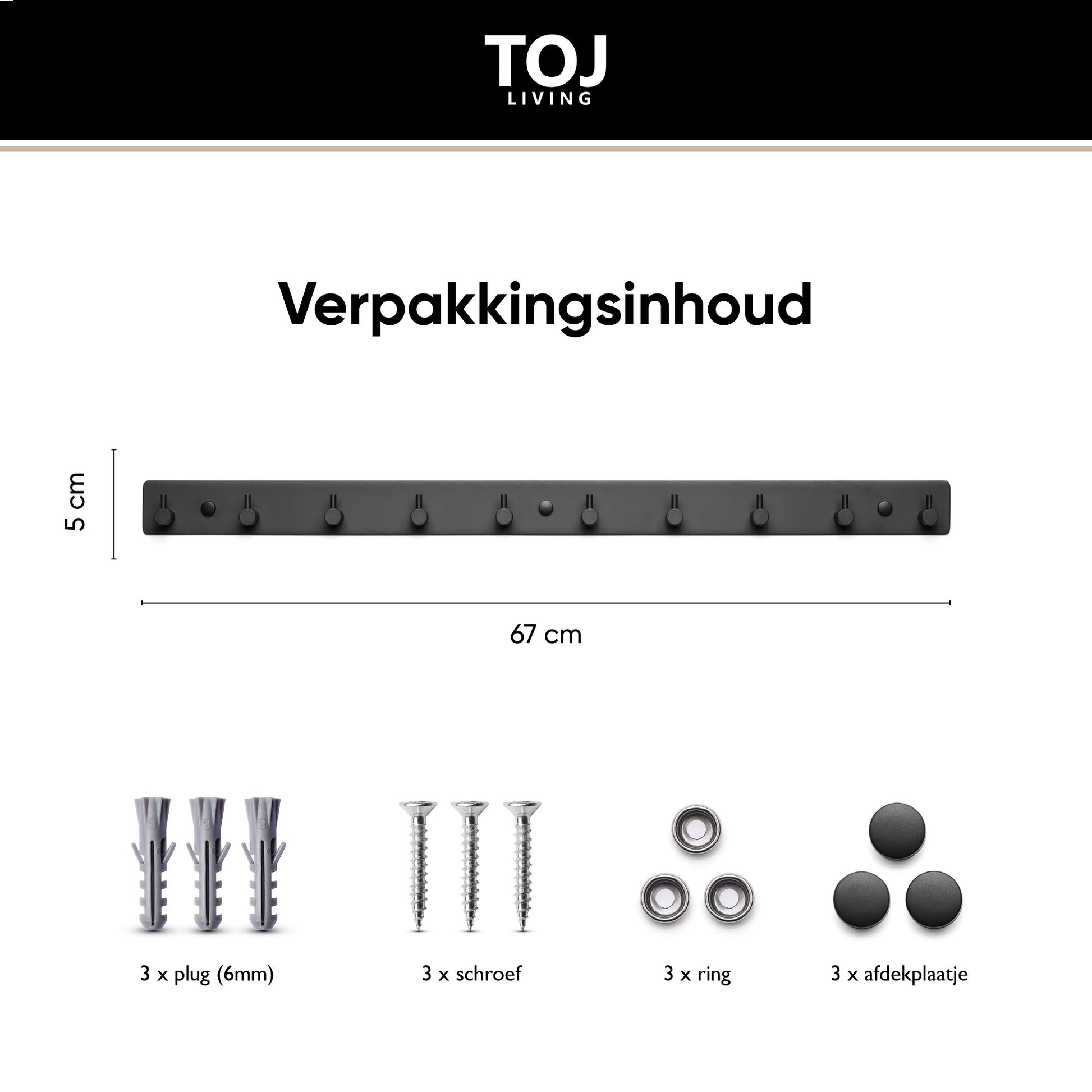 1× TOJ Living Wandgarderobe – Schwarz (10 Haken, 67 cm)
