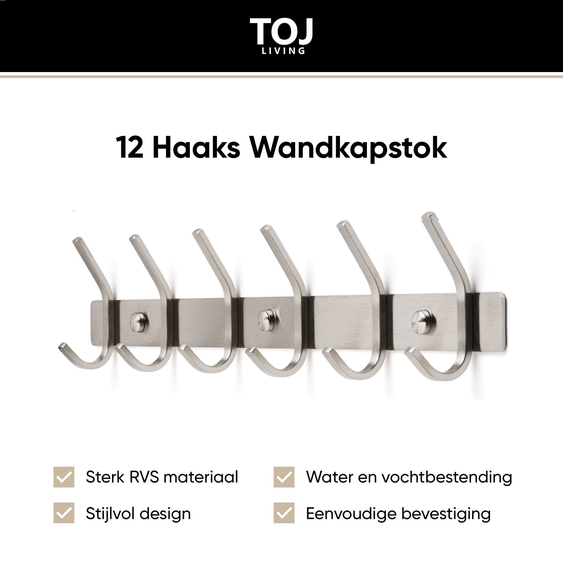 Wandgarderobe 12 Haken – Edelstahl – 46 cm – Silber | TOJ Living