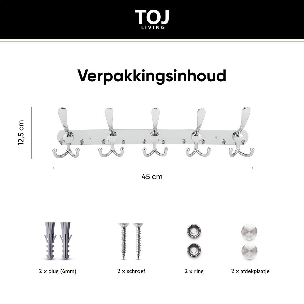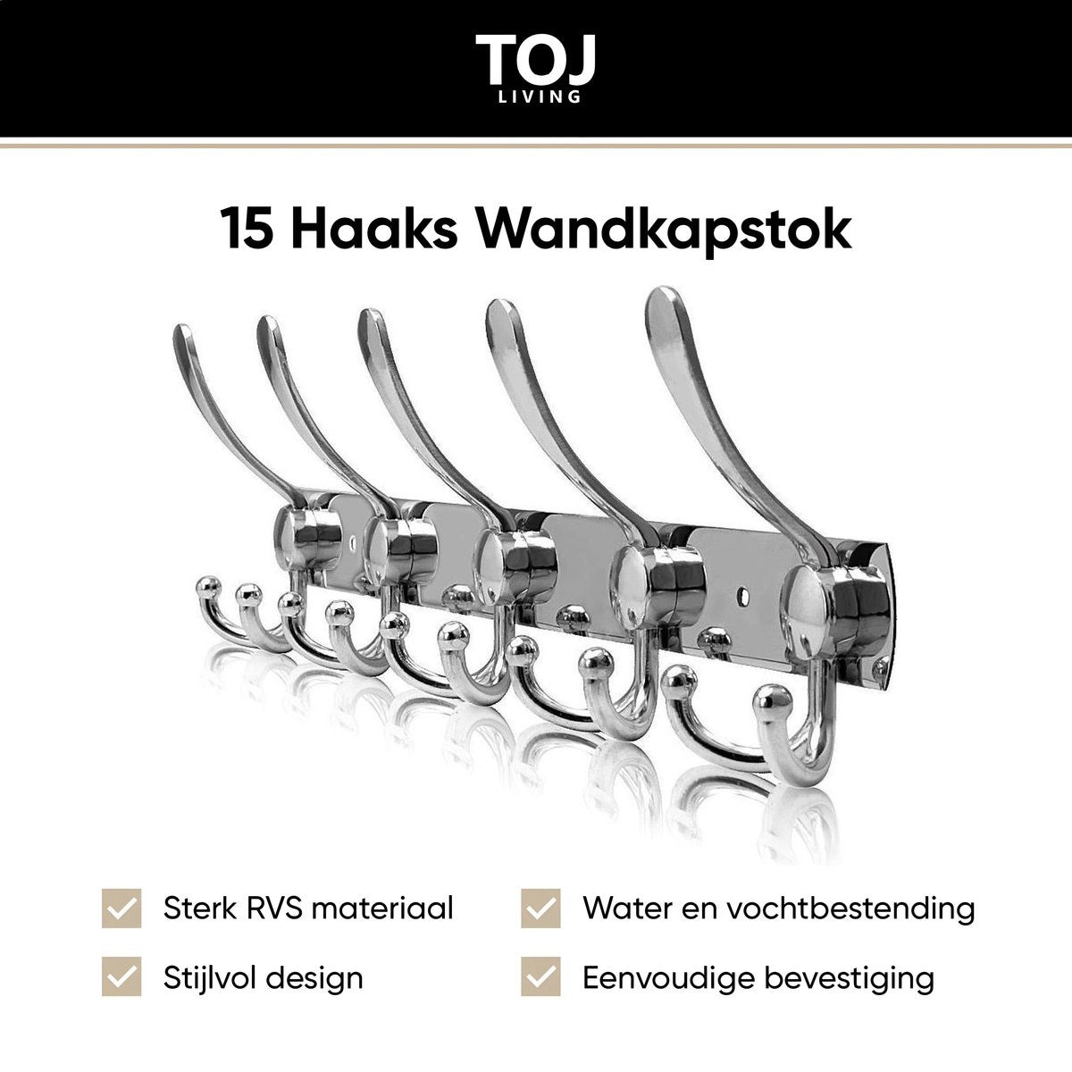 Wandgarderobe 15 Haken – Edelstahl – 45 cm – Chrom | TOJ Living