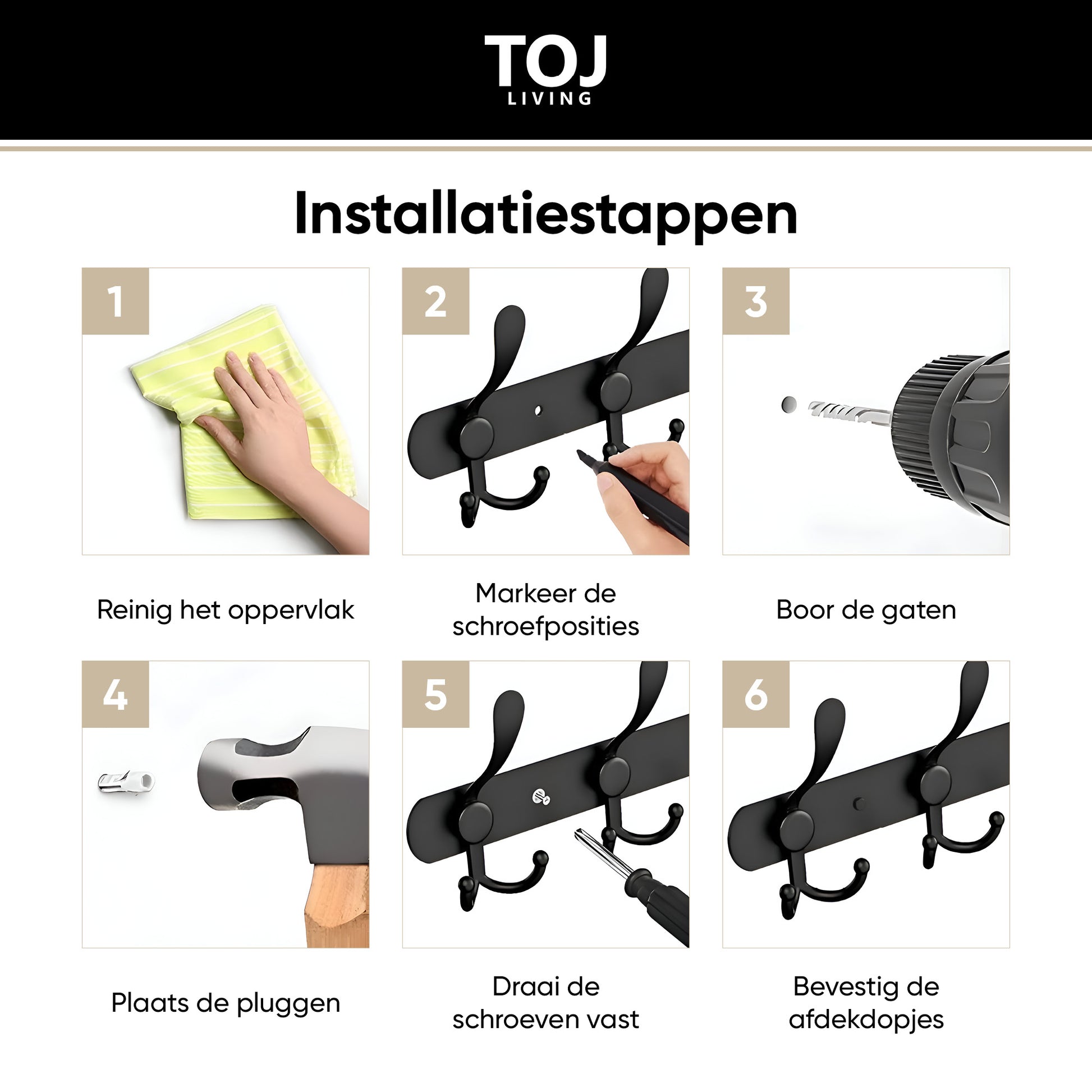 Verleihen Sie Ihrem Zuhause ein modernes & praktisches Upgrade – mit der TOJ Living Wandgarderobe in Chrom (15 Haken, 45 cm). Jetzt bestellen!