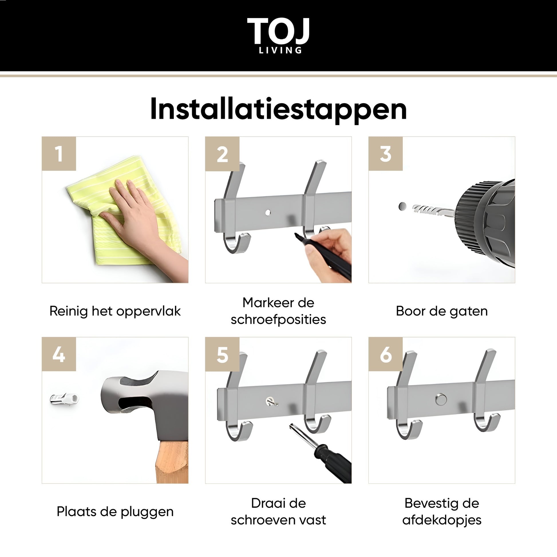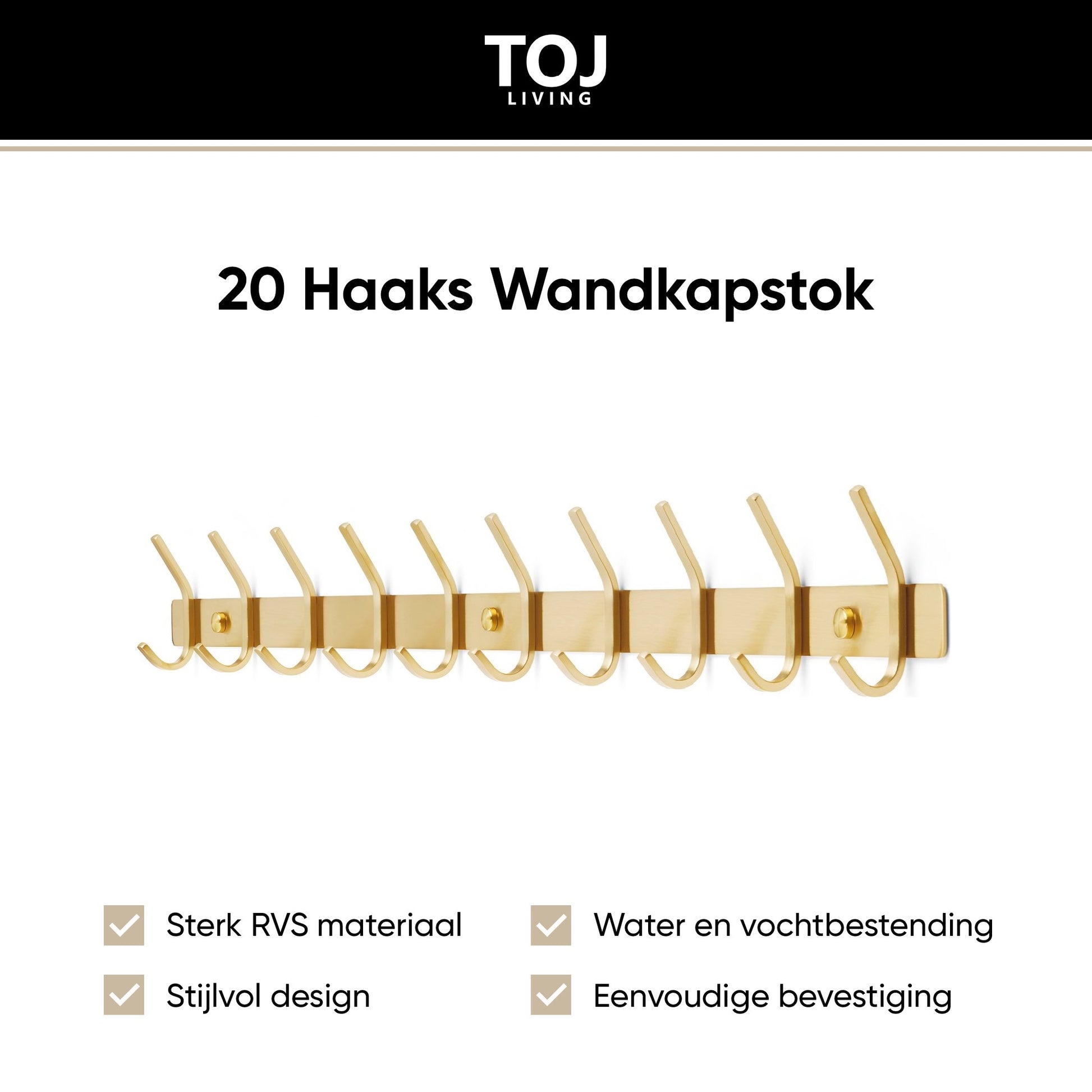 1× TOJ Living Wandgarderobe – Gold (20 Haken, 78 cm)