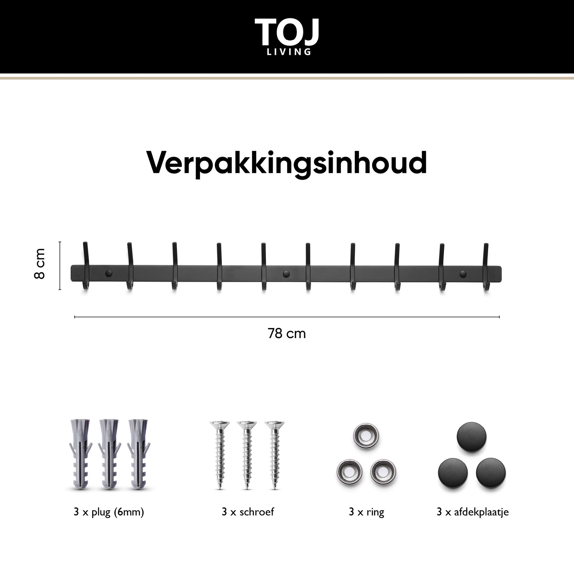 1× TOJ Living Wandgarderobe – Matt-Schwarz (20 Haken, 78 cm)