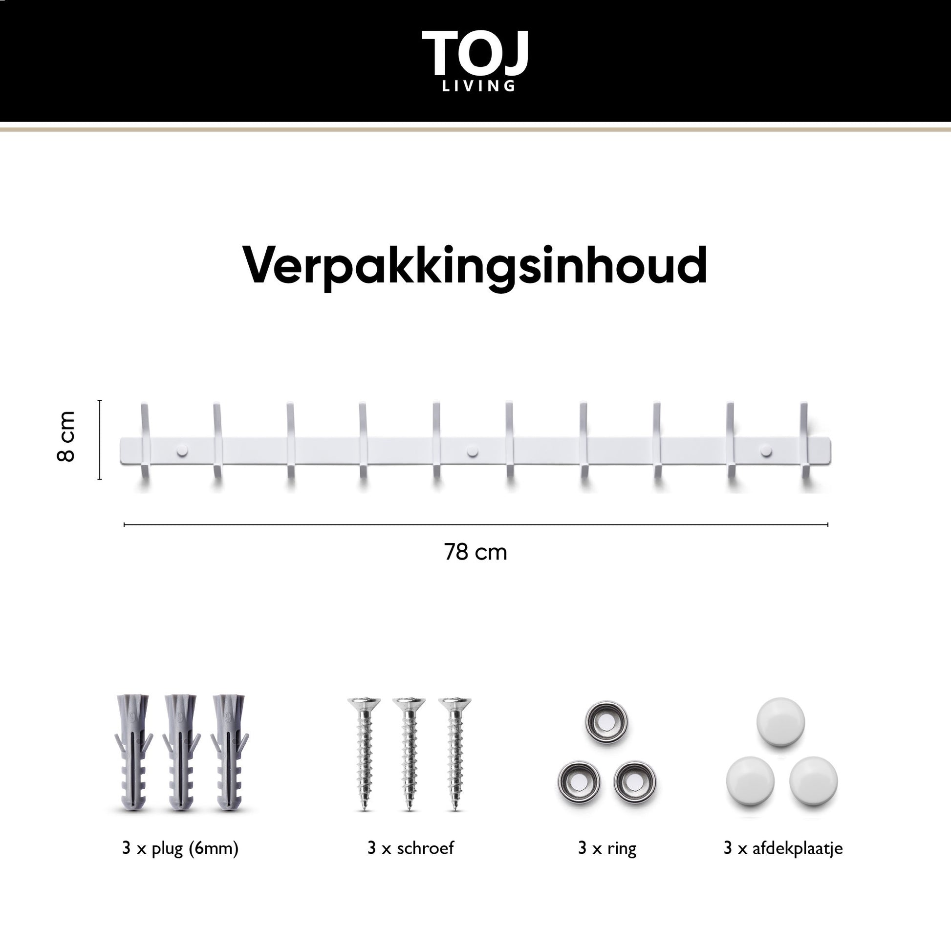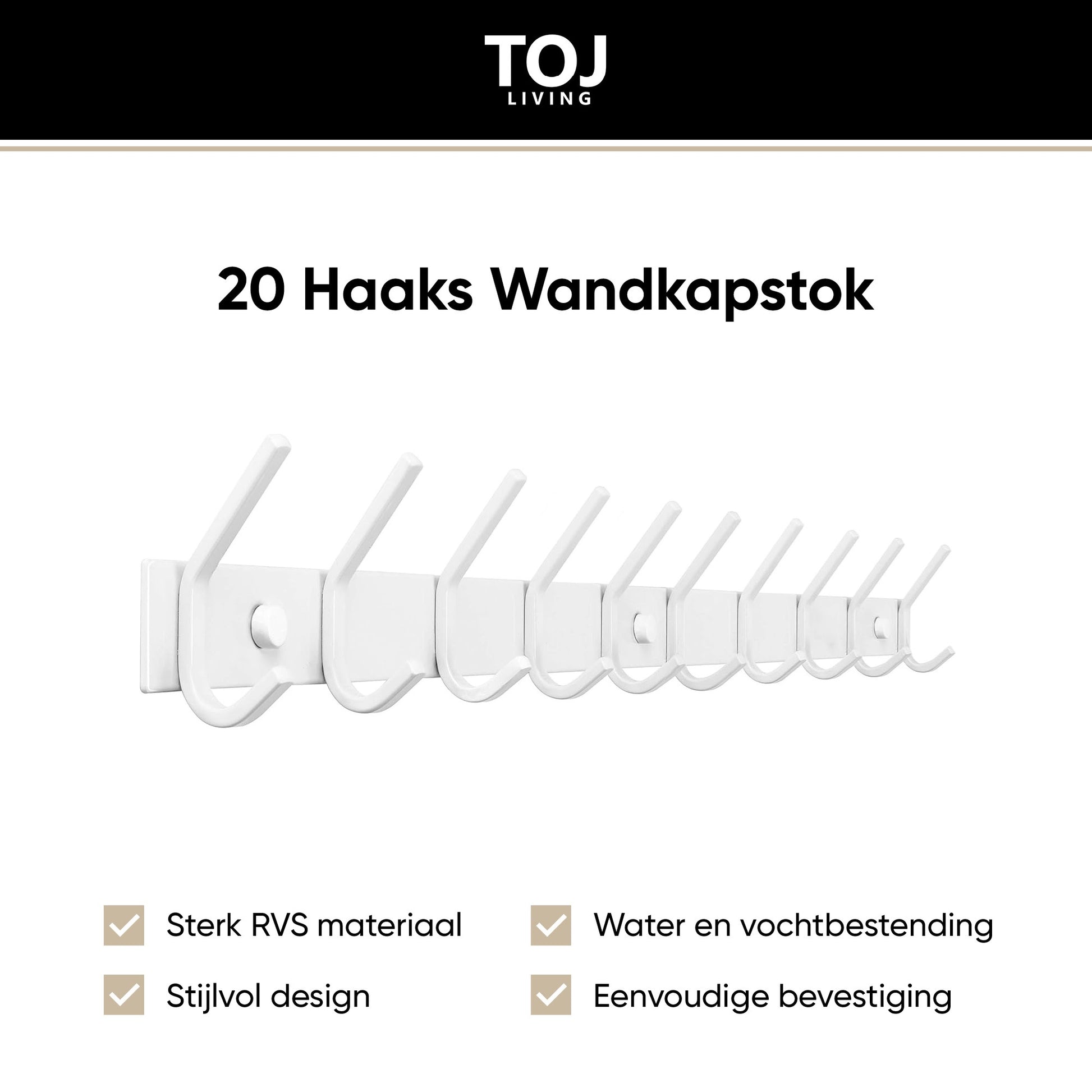 1× TOJ Living Wandgarderobe – Weiß (20 Haken, 78 cm)
