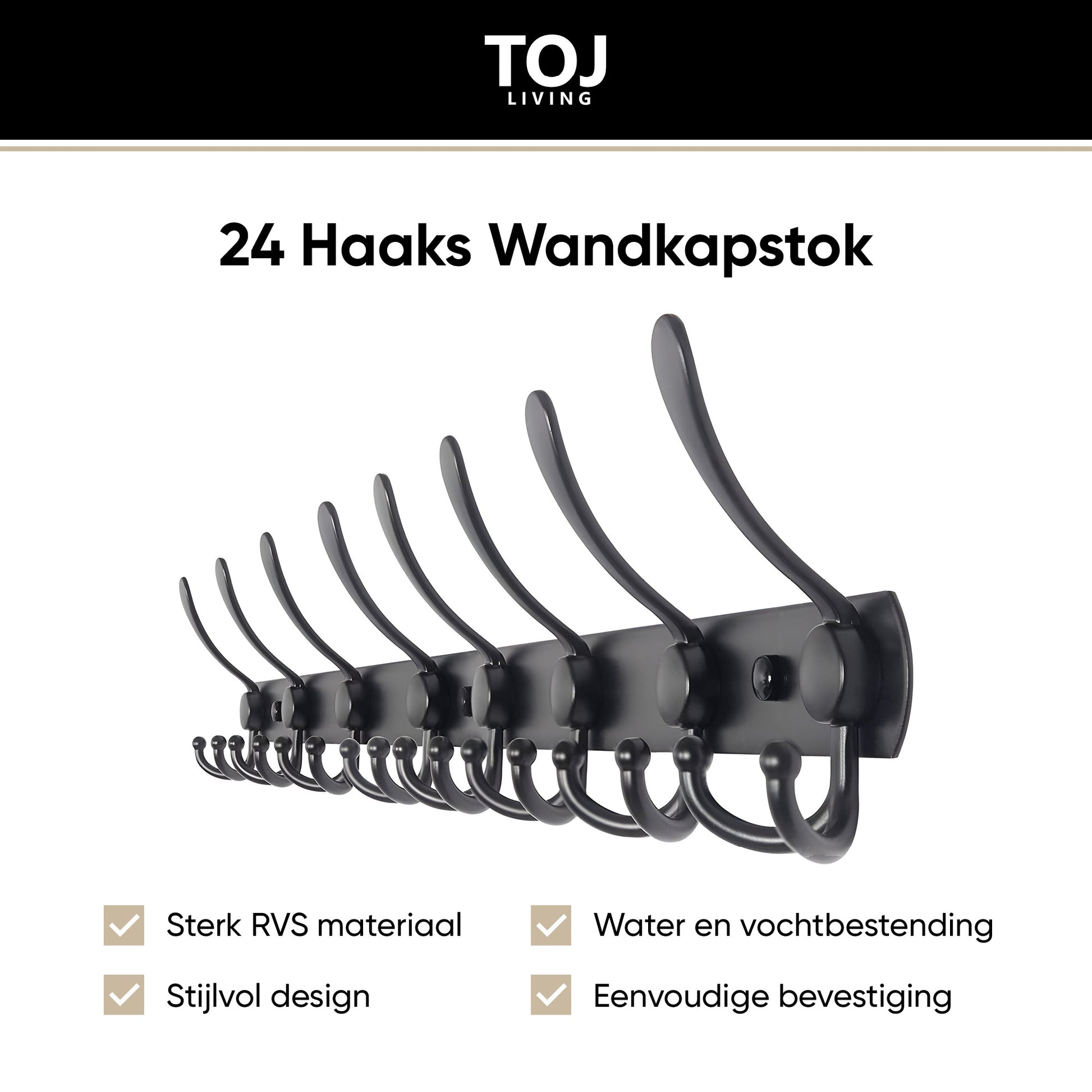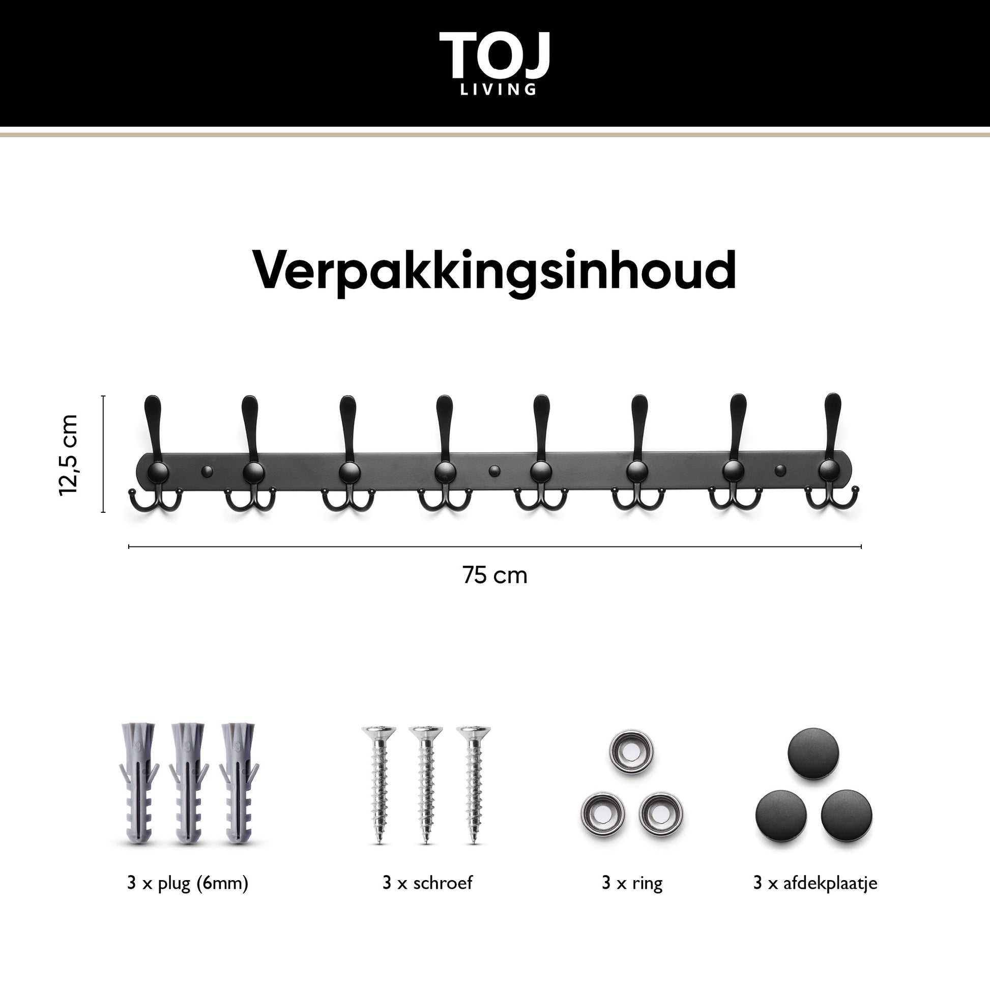1× TOJ Living Wandgarderobe – Matt-Schwarz (24 Haken, 75 cm)