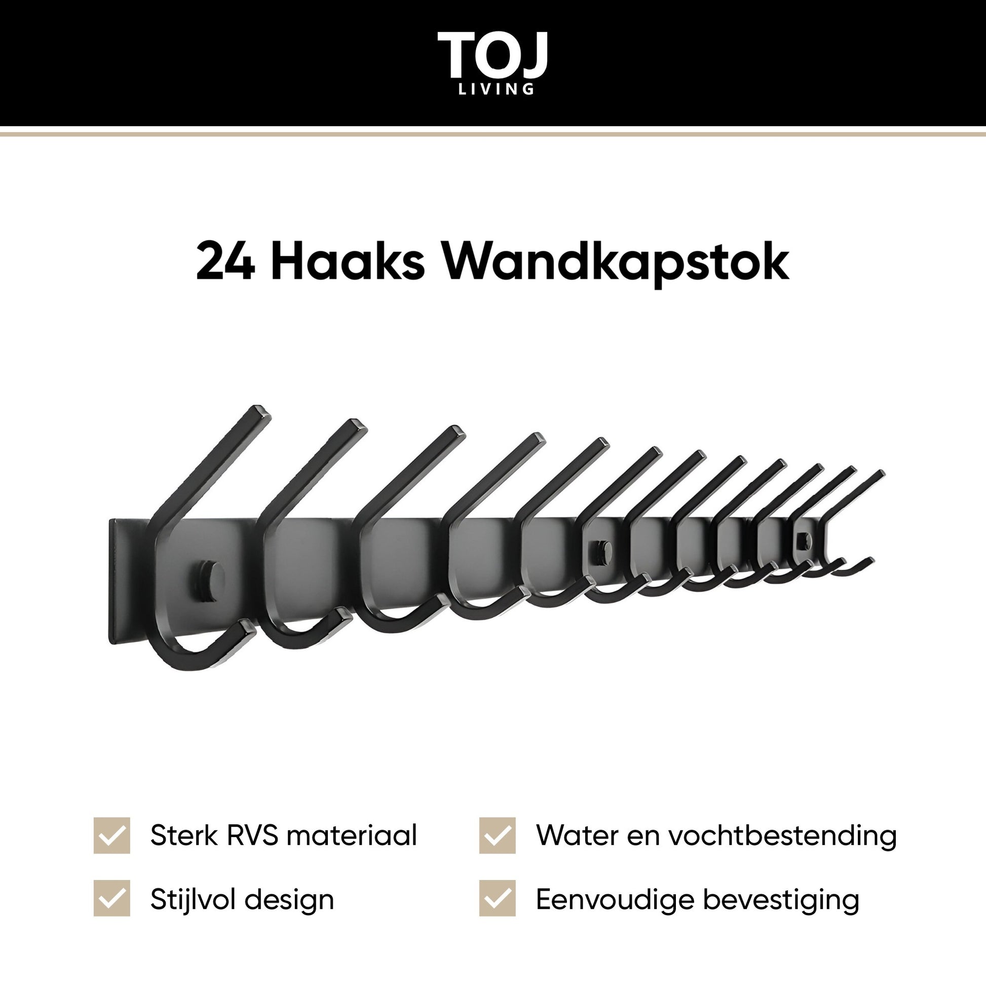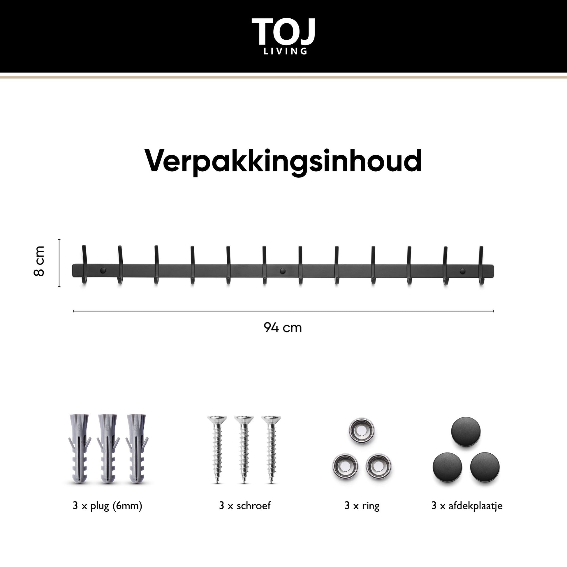 1× TOJ Living Wandgarderobe – Matt-Schwarz (24 Haken, 94 cm)