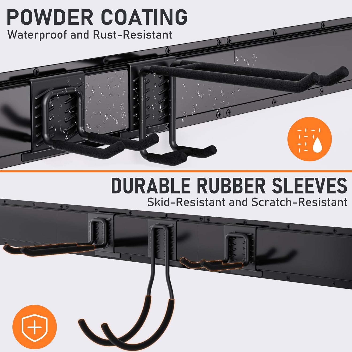 Ob Spaten, Harken und Leitern oder Wischmopps, Besen und Zubehör – jedes Werkzeug bekommt seinen festen Platz. Dank der hohen Tragkraft bis 225 kg und robuster Doppelhaken hängt Ihr Werkzeug sicher und stabil.