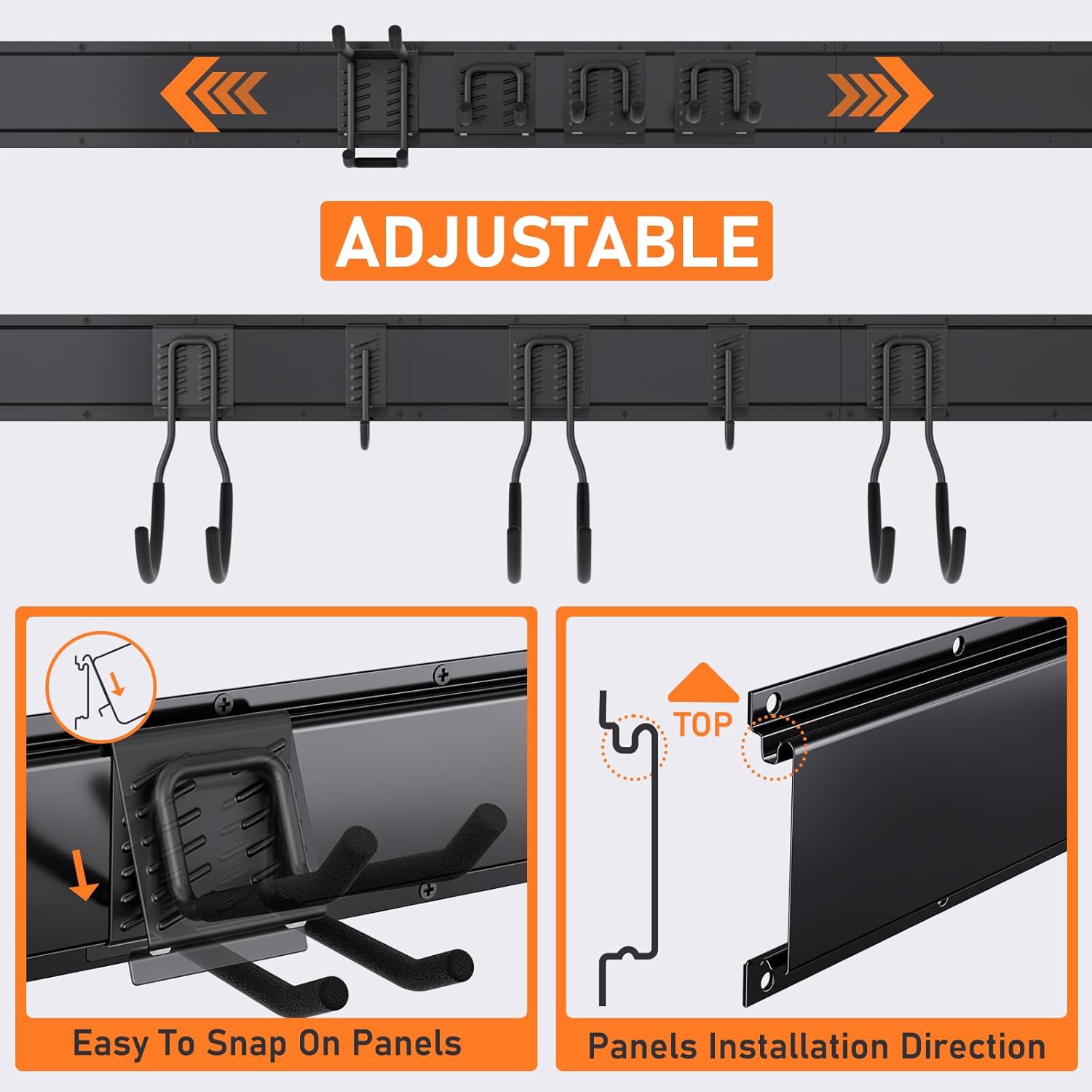- Maximale Tragkraft: 3 Schienen: 225 kg gesamt, Zubehörhaken: 20 kg, Großer Doppelhaken: 25 kg, Mittlere & runde Doppelhaken: 20 kg