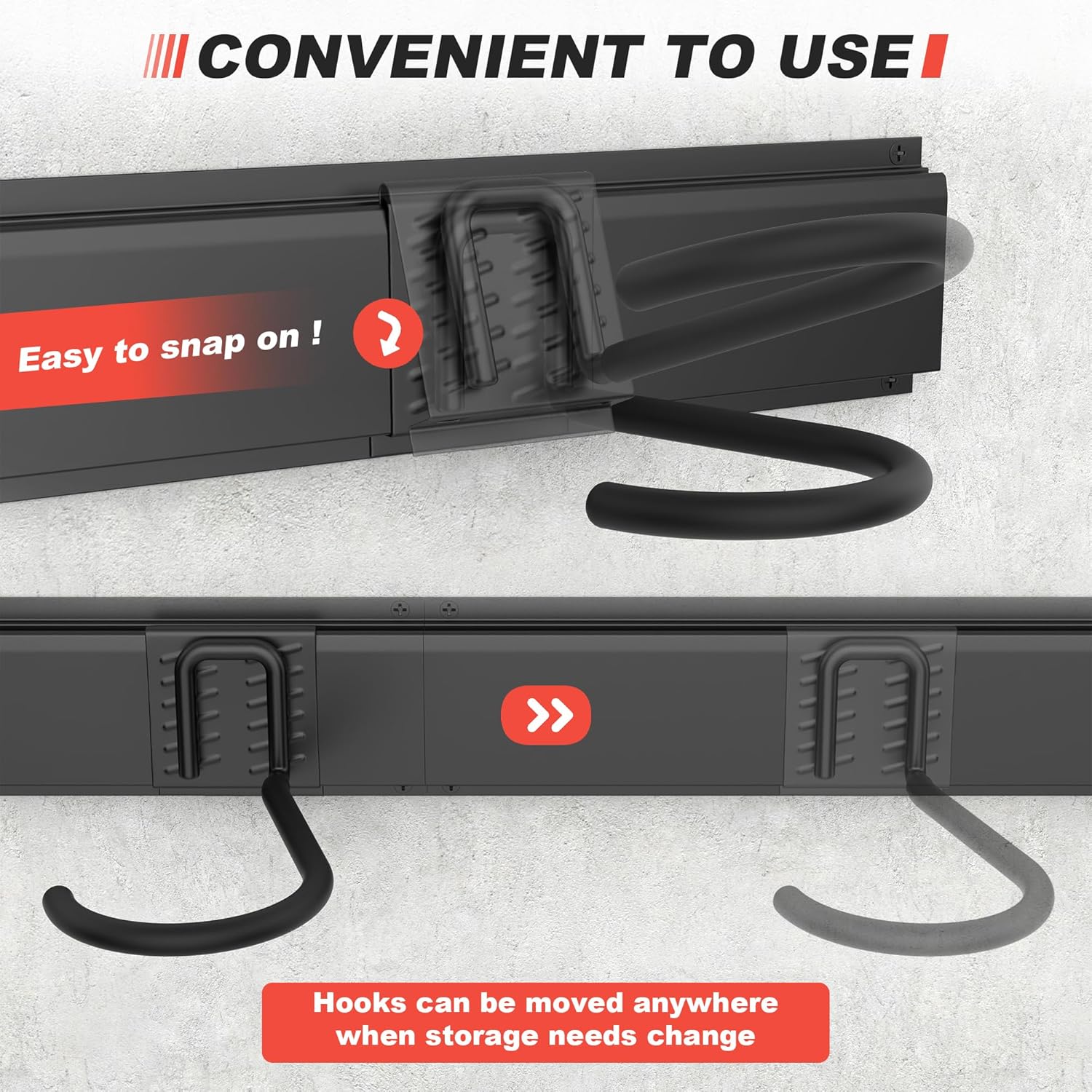 Marre d'un garage ou d'un abri de jardin encombré ? Avec le système de suspension pour vélos TOJ, rangez votre vélo et ses accessoires proprement et en toute sécurité. Extensible à l'infini, il vous permet de personnaliser le nombre de barres et de crochets selon vos besoins : vélos adultes, vélos enfants, casques, pompes… Vous pouvez également l'associer à un porte-outils pour utiliser une plus grande variété de crochets.